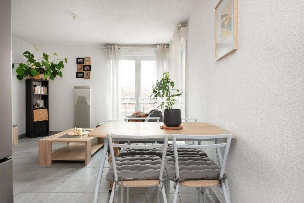 L’appartement s’ouvre sur une pièce de vie de 20m², donnant sur une terrasse.