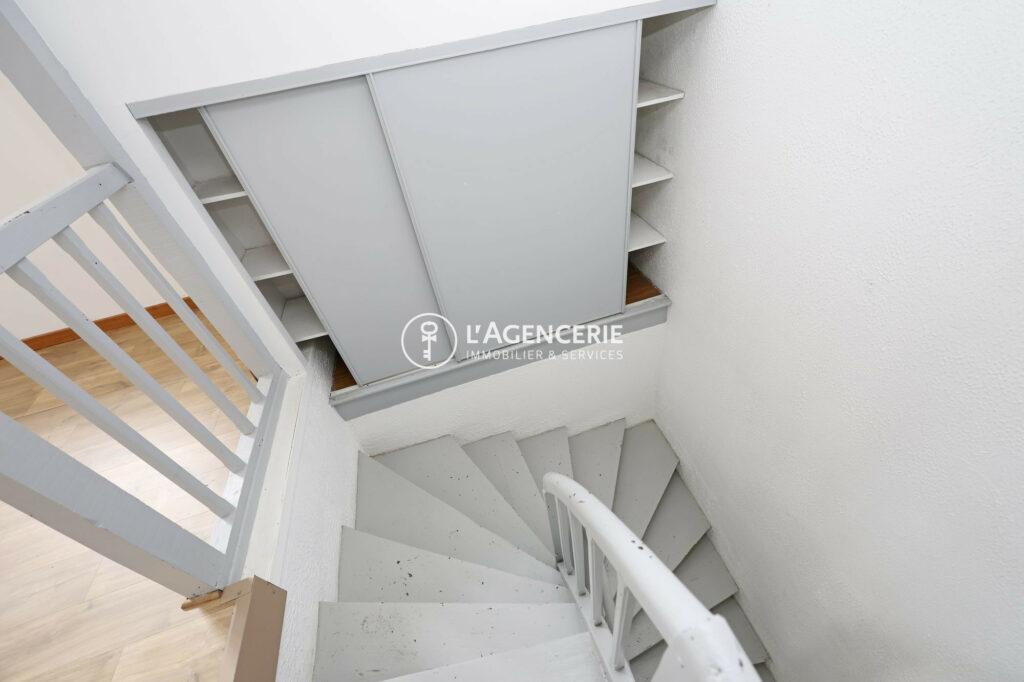 Situé au dernier étage d’une copropriété, cet appartement en duplex comprend :