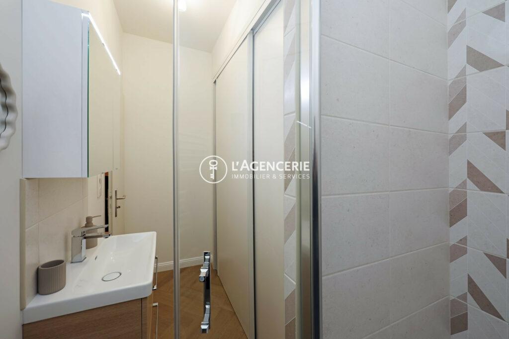 Il se compose d’une entrée, d’une pièce de vie, d’un espace cuisine aménagé et équipé (réfrigérateur, four, plaque de cuisson, hotte, lave-linge et petit électroménager), de deux chambres dont une en mezzanine, ainsi qu’une salle d’eau avec toilettes.