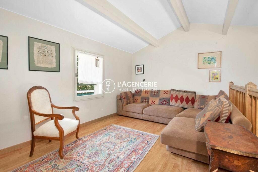 • Plus de 80 m² de pièces de vie comprenant un grand salon avec cheminée, une salle à manger et une vaste cuisine familiale avec coin repas supplémentaire, attenante à une buanderie.