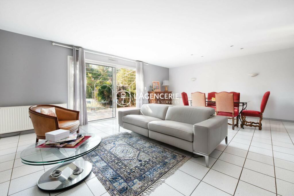 Elle s’ouvre sur une entrée accueillante menant à un vaste salon/salle à manger avec cheminée, baigné de lumière naturelle et ouvert sur une grande terrasse donnant sur le jardin arboré et sa piscine.La cuisine indépendante, aménagée et fonctionnelle, offre un espace agréable au quotidien.