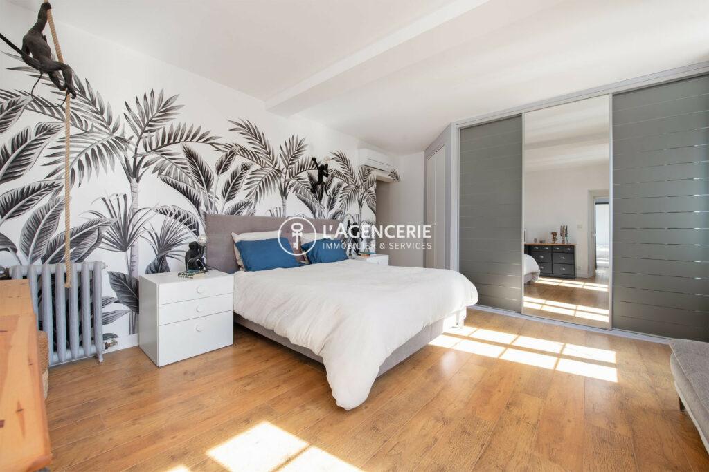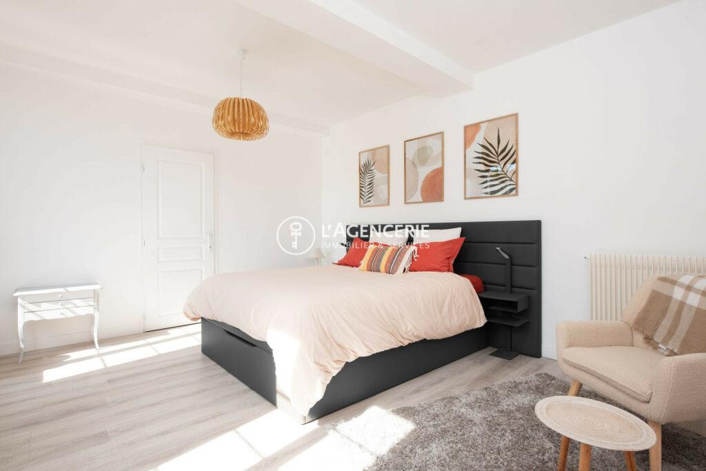 La maison principale de 218 m² séduit par ses volumes lumineux avec séjour, cuisine ouverte, salon en pierres, suite parentale et deux chambres supplémentaires avec salle d’eau.