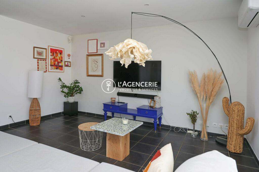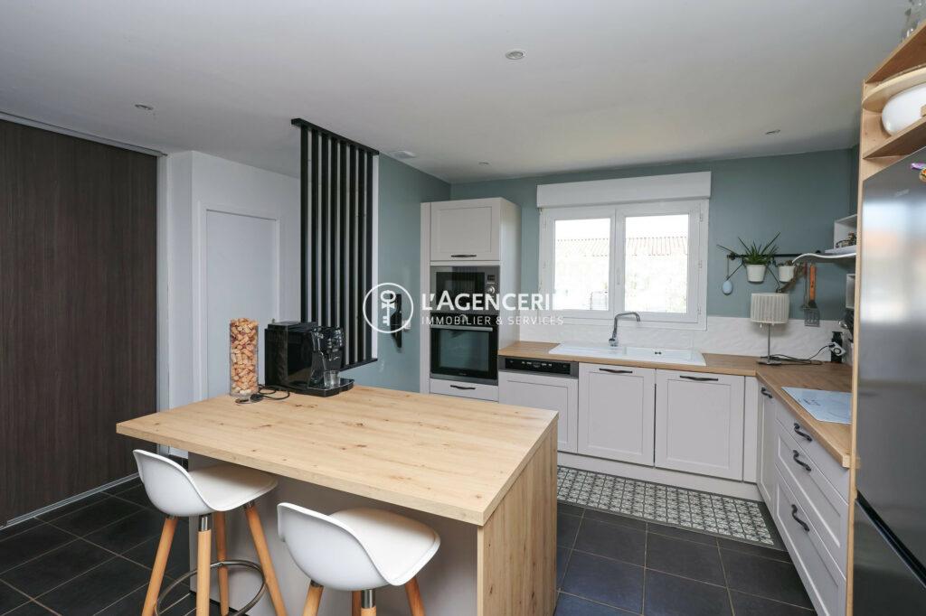 Dès l’entrée, vous serez accueillis par un grand placard et un WC indépendant. L’espace de vie, spacieux et lumineux, comprend une cuisine équipée ouverte, un salon cosy et un coin repas avec vue directe sur le jardin et la piscine. Un cellier/buanderie attenant ajoute à la fonctionnalité du lieu.