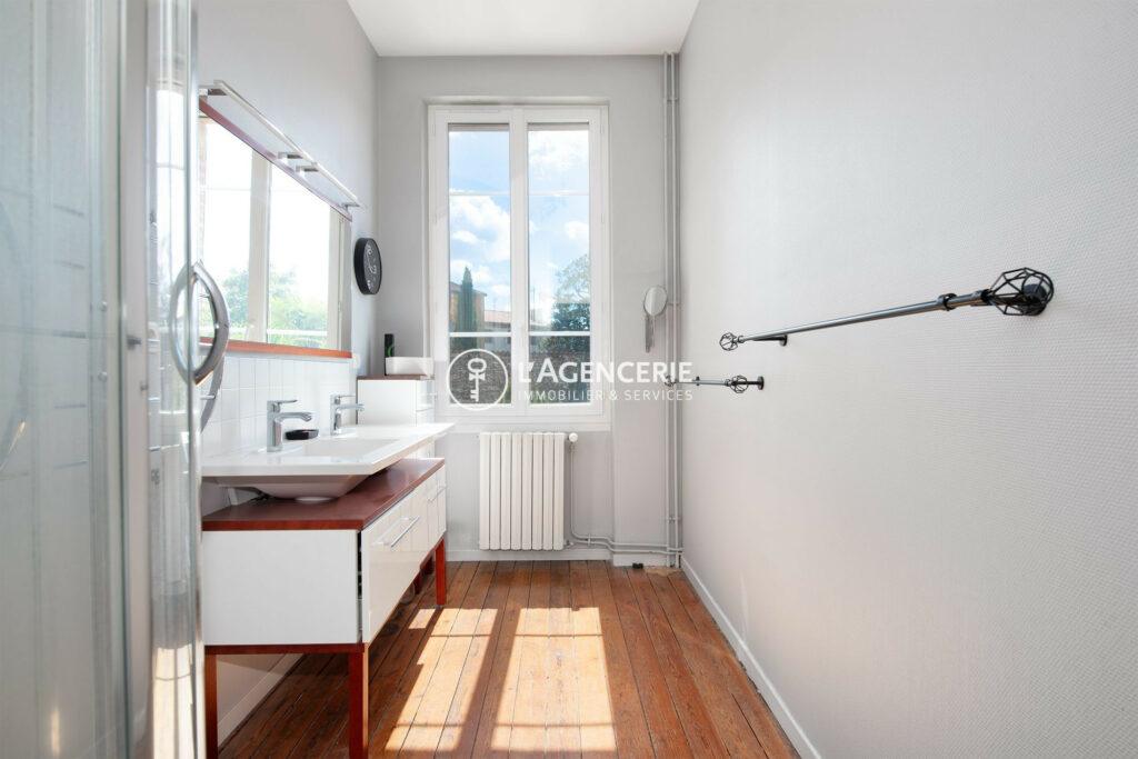 Au niveau supérieur, le palier dessert deux autres chambres de 19 m² , un bureau et une salle de bain (baignoire, meuble simple vasque).