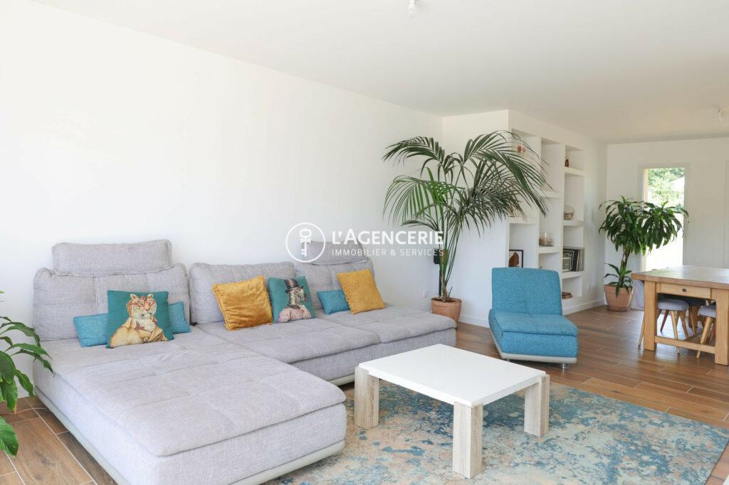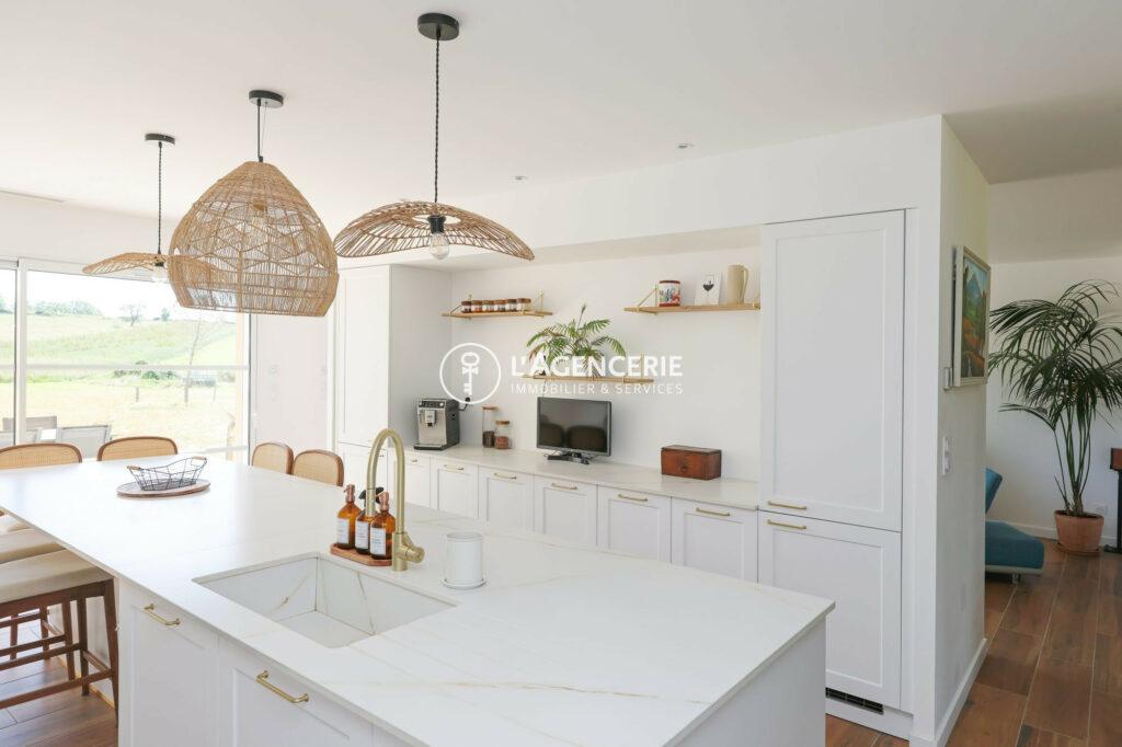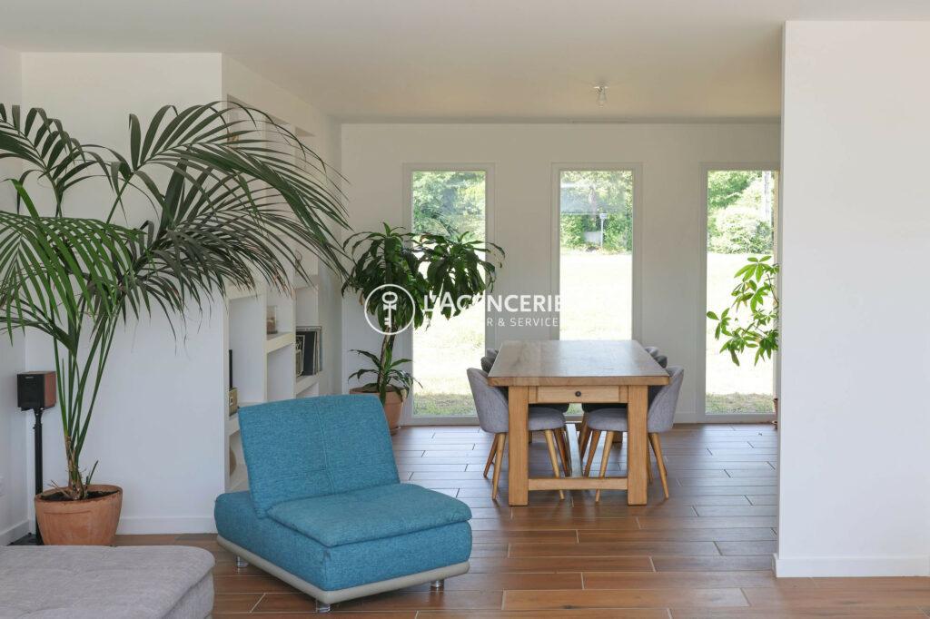 Dès l’entrée, vous serez séduit par une vaste pièce de vie de 70 m², baignée de lumière grâce à de grandes baies vitrées. La cuisine contemporaine, entièrement aménagée et équipée, s’ouvre sur un espace convivial idéal pour recevoir. Un cellier attenant et un bureau intégré viennent compléter cet espace fonctionnel.